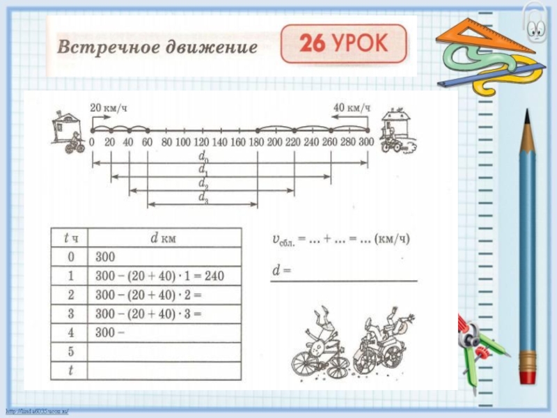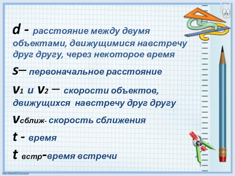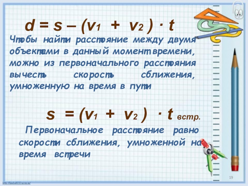 s = (v1 + v2 ) · t встр.