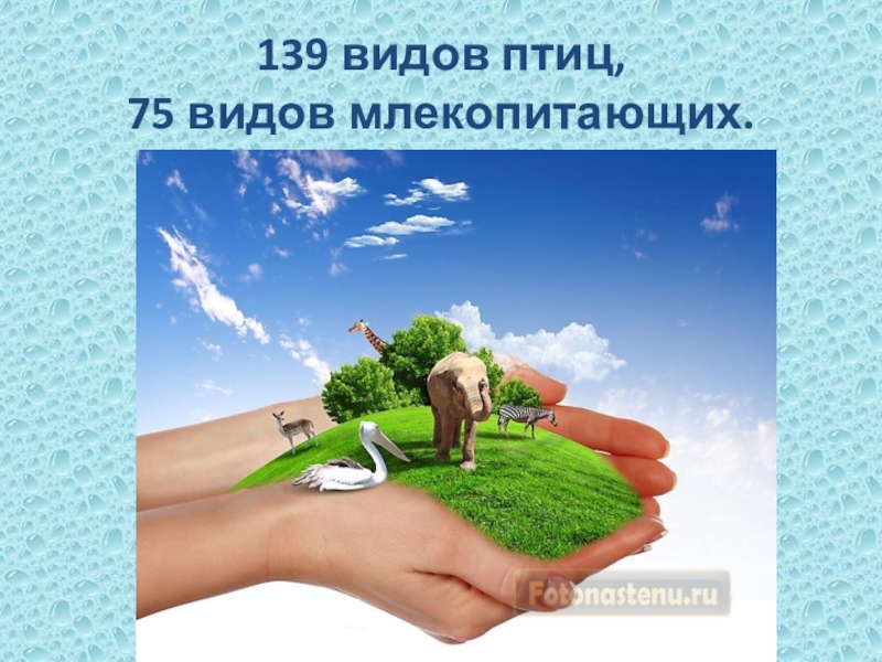 Ответ: 9 видов-амфибий, по 10 видов рыб и рептилий, 40 видов птиц, 13 видов млекопитающих.