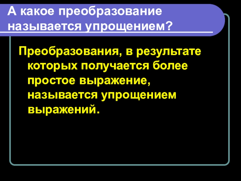 Слайд 4А какое преобразование называется упрощением?