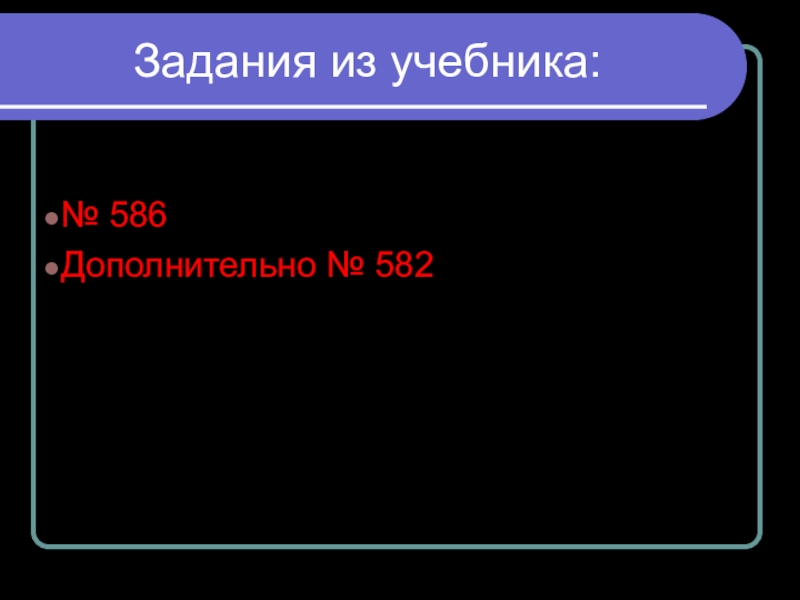 Задания из учебника:№586№№№ 586Дополнительно № 582№