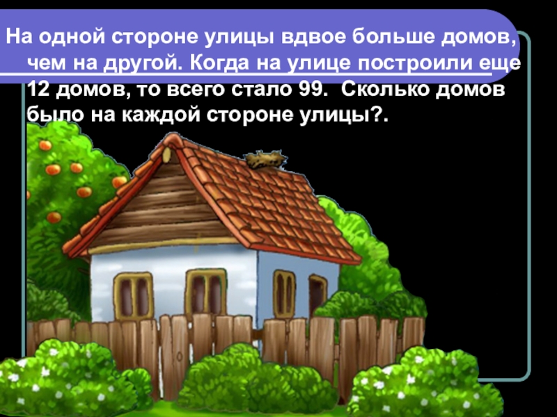 Слайд 14На одной стороне улицы вдвое больше домов, чем на другой. Когда