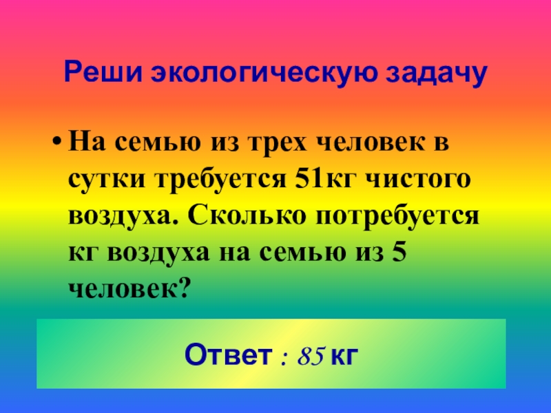 Столько кг чистого воздуха требуется в сутки для дыхания одного человека