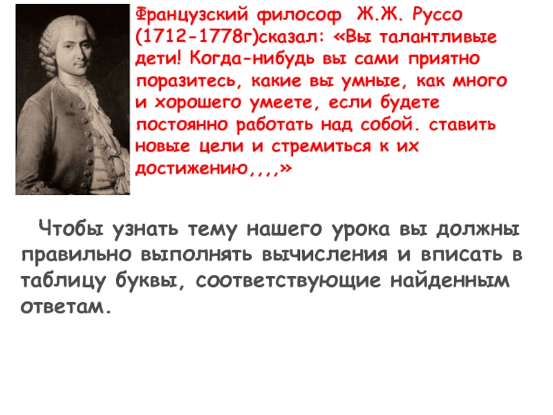 Чтобы узнать тему нашего урока вы должны правильно выполнять вычисления и вписать в таблицу буквы, соответствующие найденным ответам.