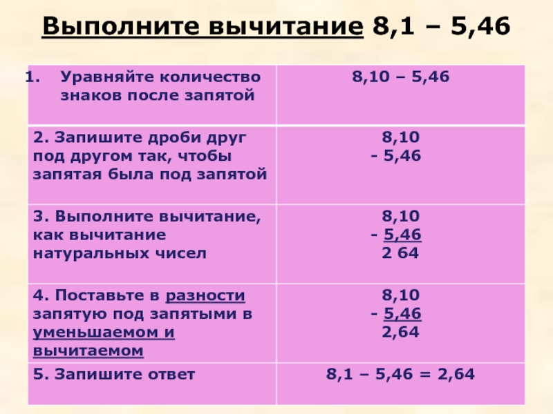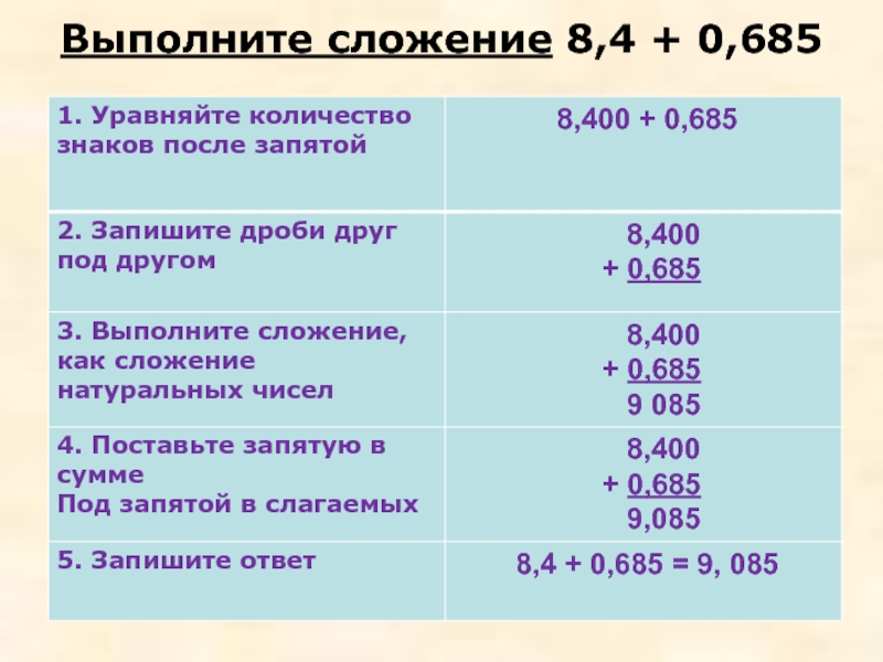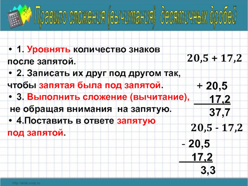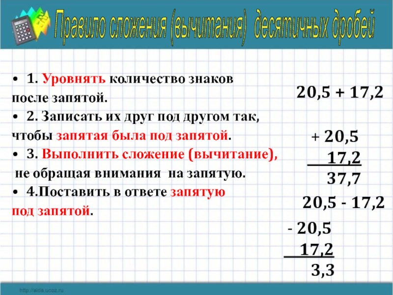 Правило сложения (вычитания) десятичных дробей