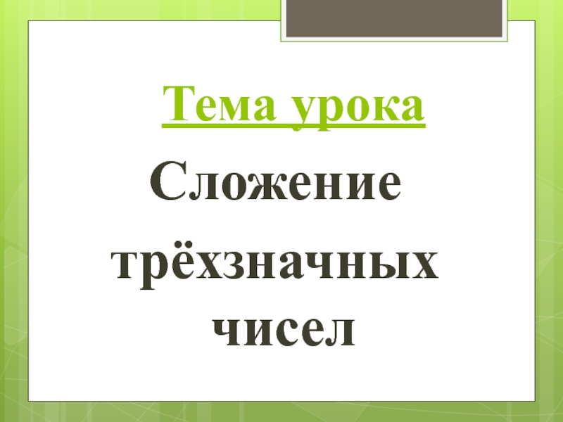 Тема урокаСложениетрёхзначных чисел