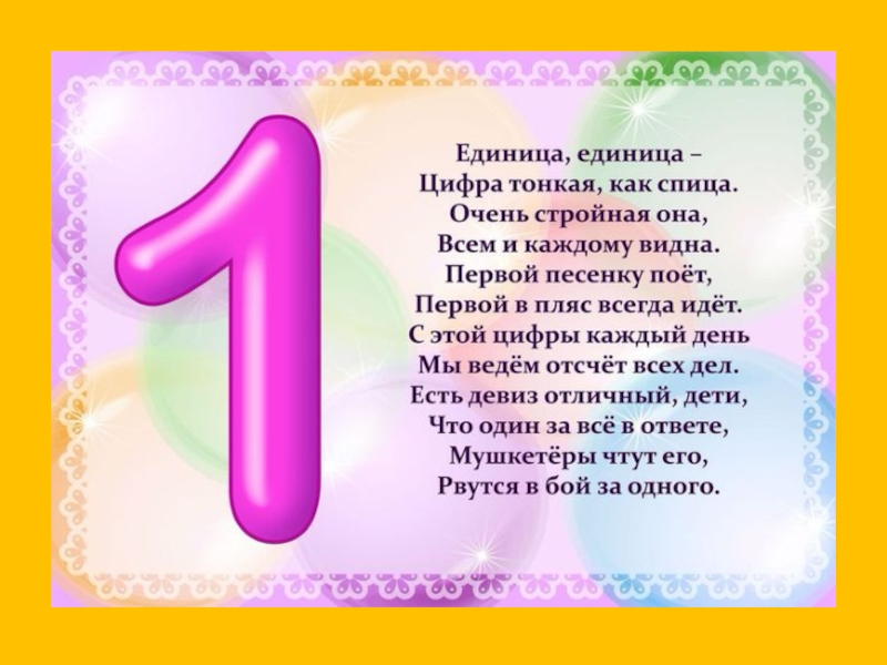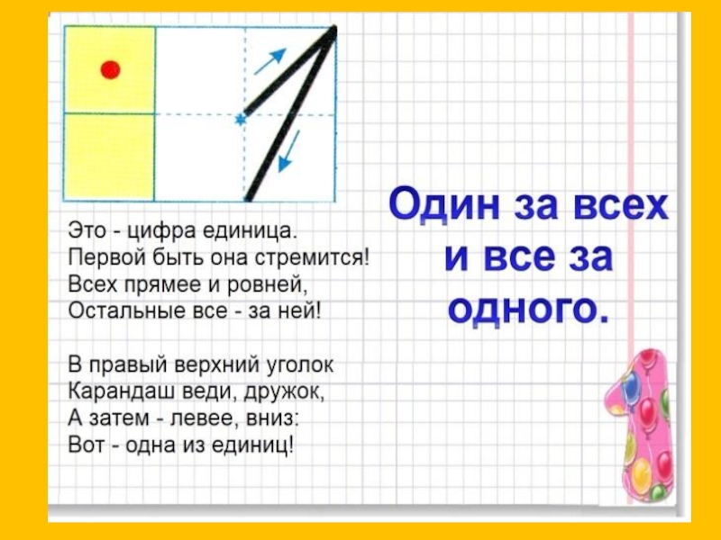 Презентация, доклад к уроку математики по теме Цифра 1 (1 класс)