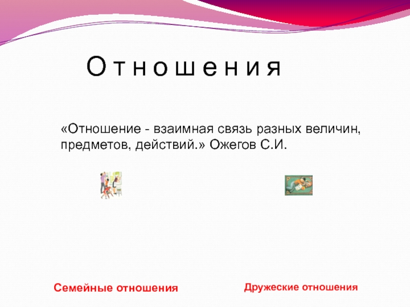 О т н о ш е н и я«Отношение - взаимная связь разных величин, предметов, действий.» Ожегов