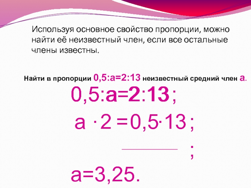 Используя основное свойство пропорции, можно найти её неизвестный член, если все остальные члены известны. Найти в пропорции