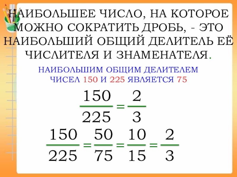ЧИСЕЛ 150 И 225 ЯВЛЯЕТСЯ 75