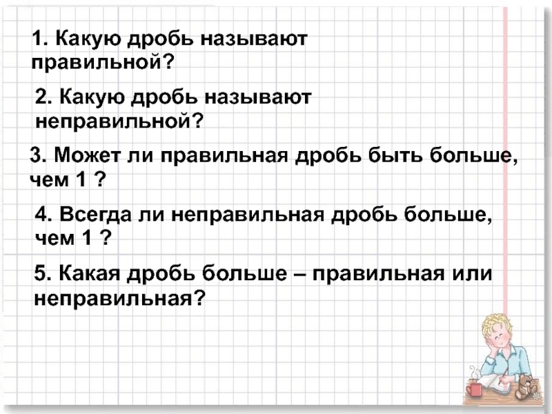 4. Всегда ли неправильная дробь больше, чем 1 ?