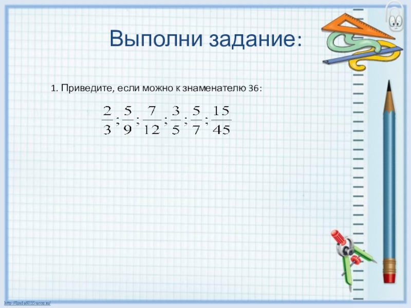 Выполни задание:1. Приведите, если можно к знаменателю 36: