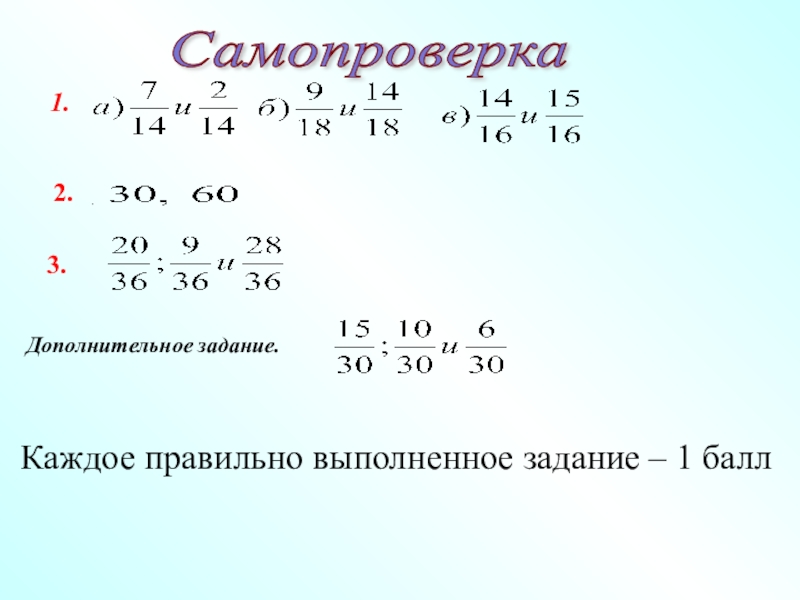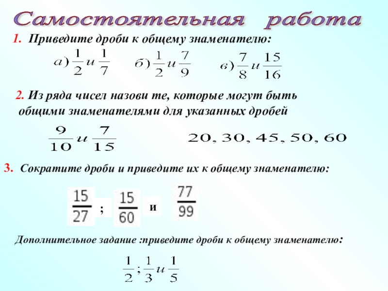 Дополнительное задание :приведите дроби к общему знаменателю: