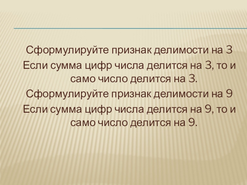 Слайд 5Сформулируйте признак делимости на 3