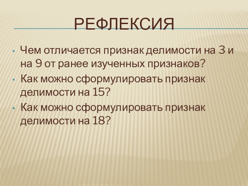 РефлексияЧем отличается признак делимости на 3 и на