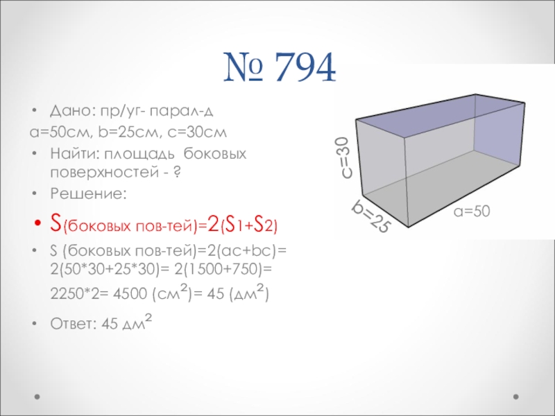 Площадь поверхности куба равна произведению квадрата его ребра а на количество граней (6)