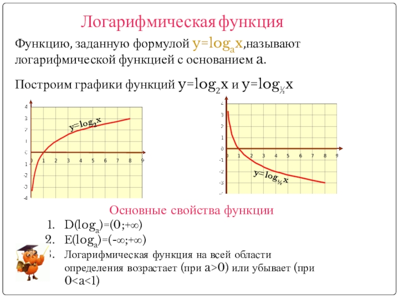 Функцию, заданную формулой y=logax,называют логарифмической функцией с основанием a.