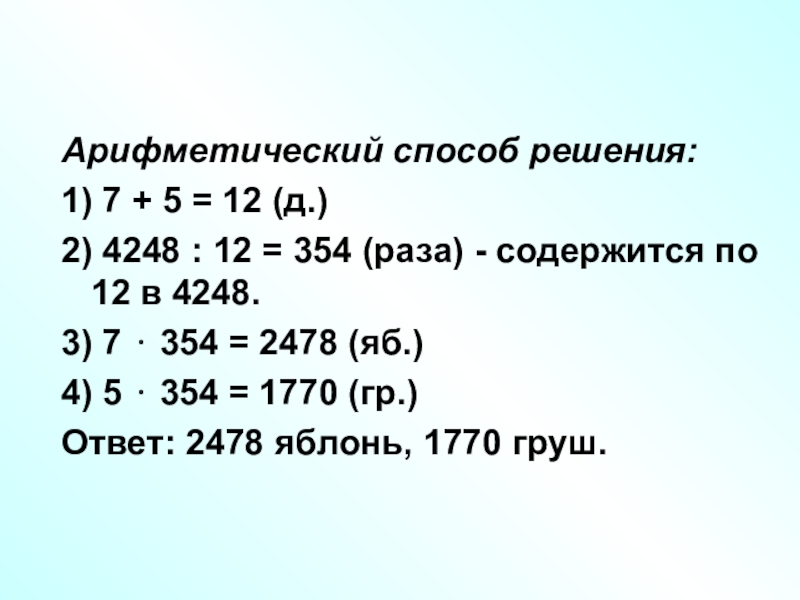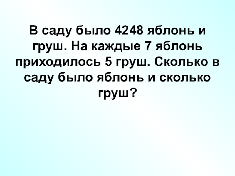 Слайд 26В саду было 4248 яблонь и груш. На каждые 7 яблонь