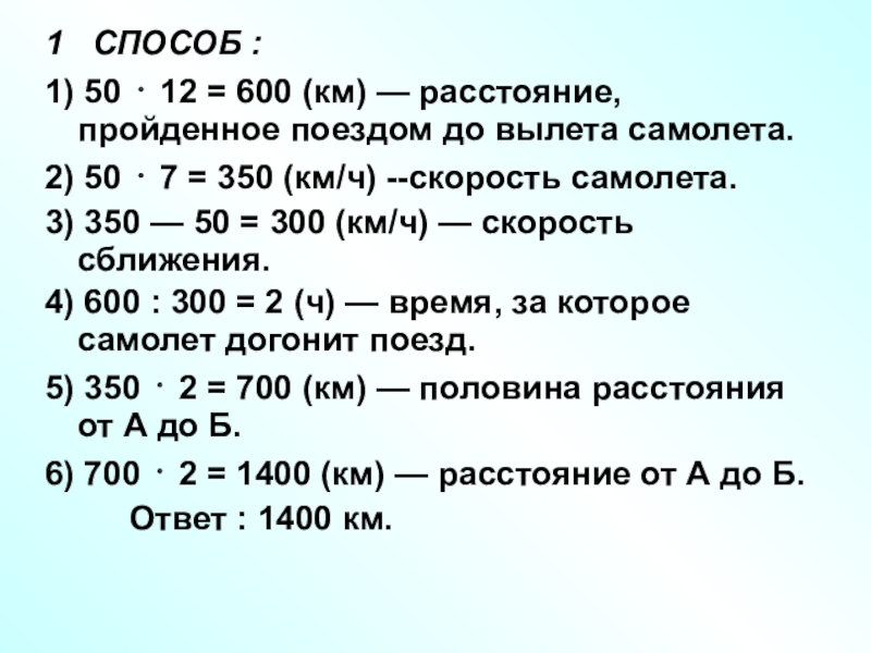 6) 700 ⋅ 2 = 1400 (км) — расстояние от А до Б.
