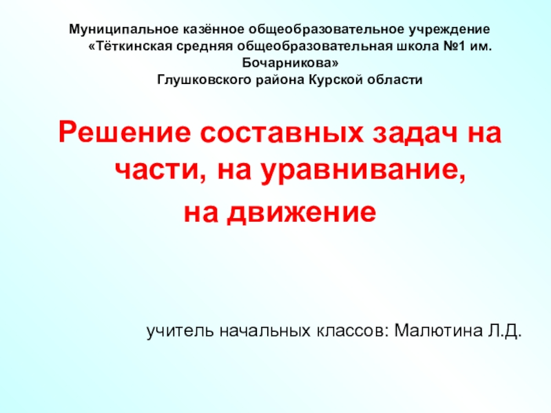 Слайд 1Муниципальное казённое общеобразовательное учреждение «Тёткинская средняя общеобразовательная школа №1 им.Бочарникова»