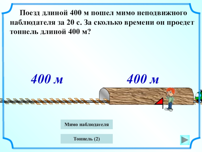 Поезд длиной 400 м пошел мимо неподвижного наблюдателя