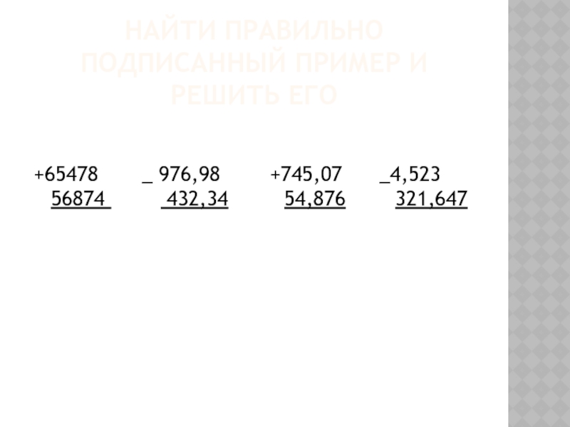 Найти правильно подписанный пример и решить его +65478    _ 976,98    +745,07