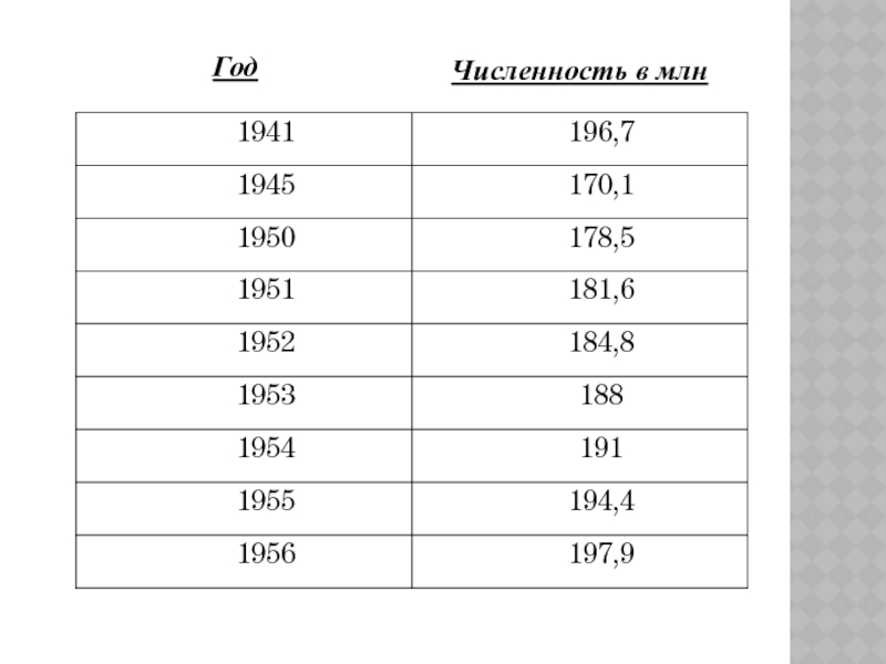 -Через сколько лет восстановилась численность населения после ВОВ.
