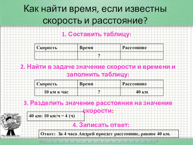 4. Как найти время, если известны расстояние и скорость движения?