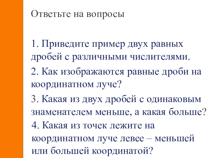 3. Какая из двух дробей с одинаковым знаменателем меньше, а какая больше?