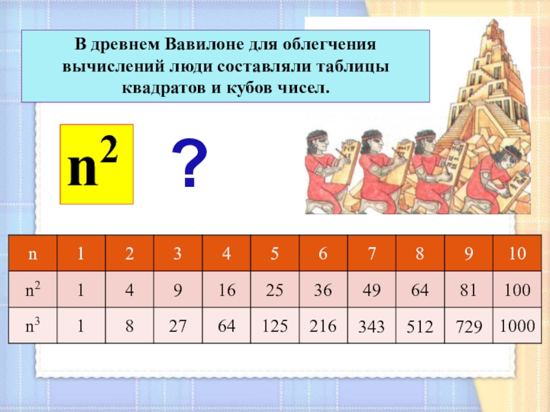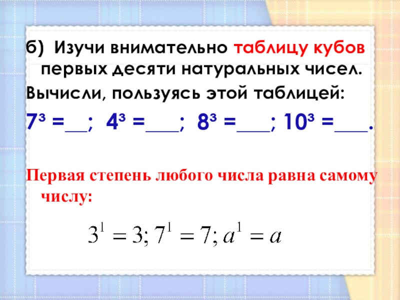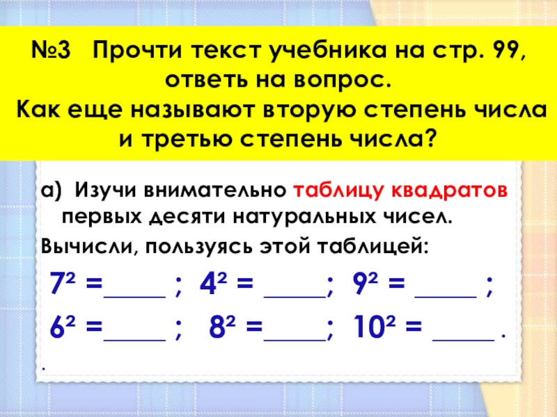 а) Изучи внимательно таблицу квадратов первых десяти натуральных чисел.