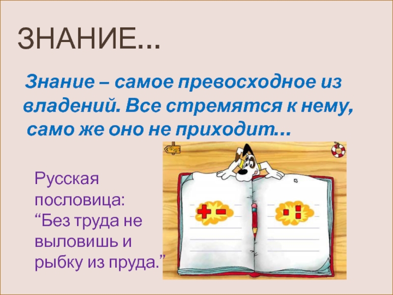 Знание – самое превосходное из владений. Все стремятся к нему,