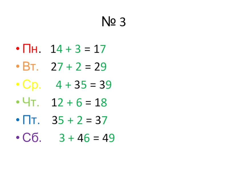 № 3Пн.  14 + 3 = 17Вт.  27 + 2 = 29Ср.   4