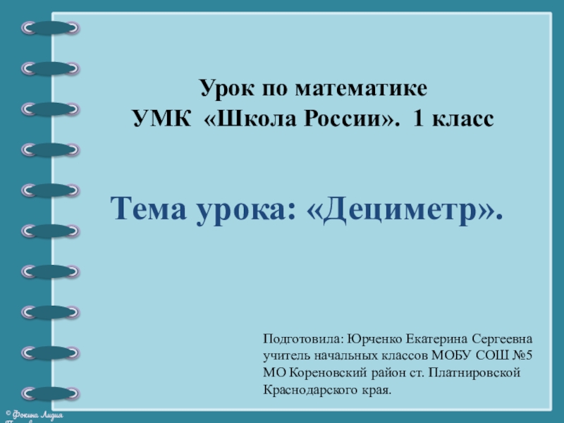 учитель начальных классов МОБУ СОШ №5 МО Кореновский район ст. Платнировской Краснодарского края.