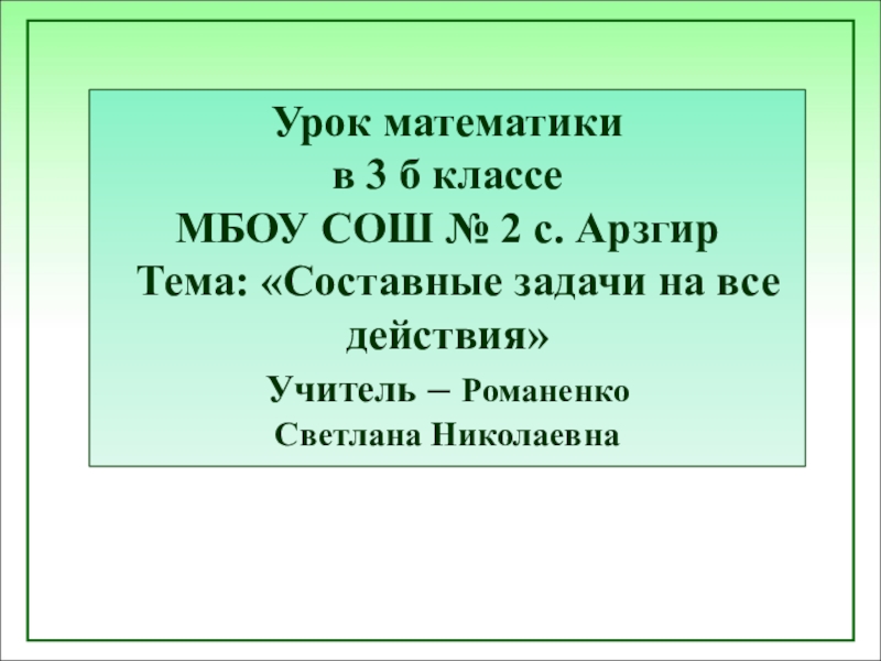 Тема: «Составные задачи на все действия»