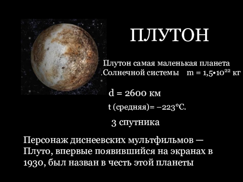 Плутон самая маленькая планета Солнечной системы m = 1,5•1022 кг
