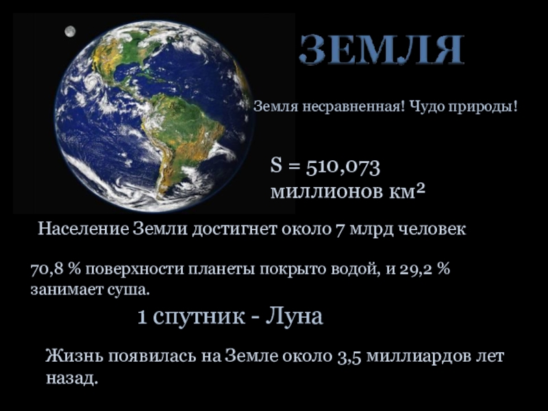 70,8 % поверхности планеты покрыто водой, и 29,2 % занимает суша.