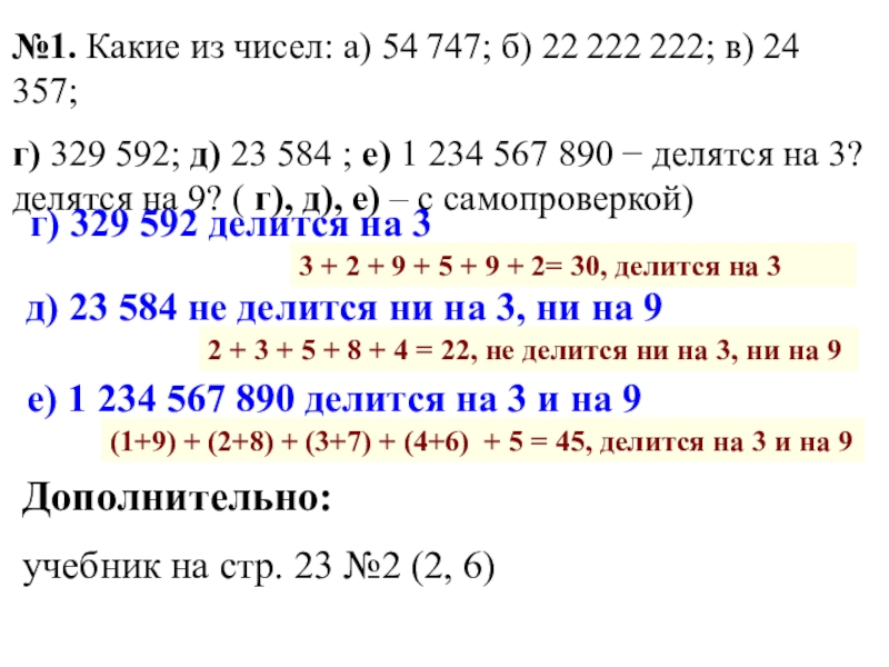 е) 1 234 567 890 делится на 3 и на 9