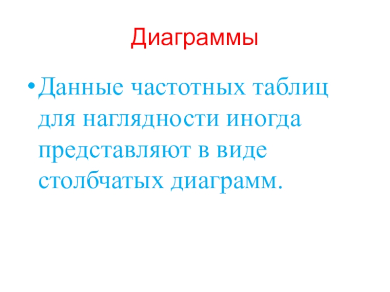 ДиаграммыДанные частотных таблиц для наглядности иногда представляют в виде столбчатых диаграмм.