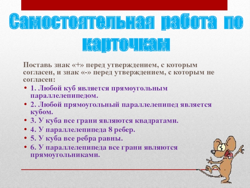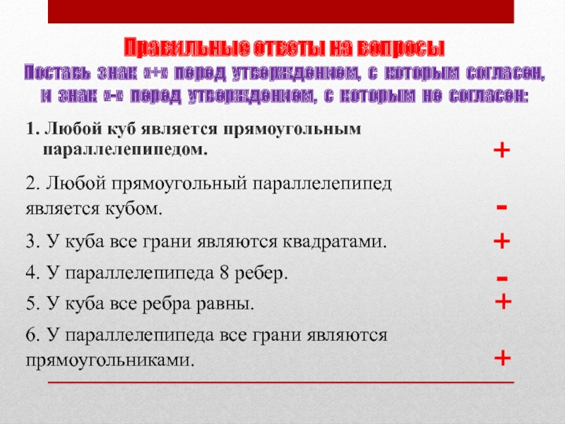 7) Что можно сказать о гранях, ребрах, измерениях куба?