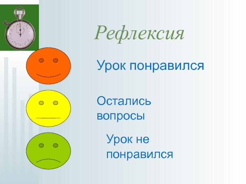 РефлексияУрок понравилсяУрок не понравилсяОстались вопросы