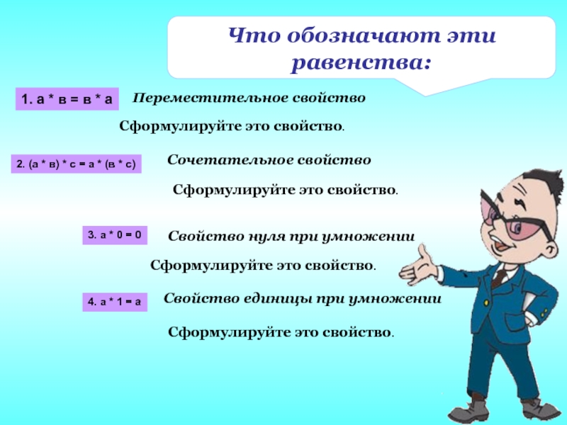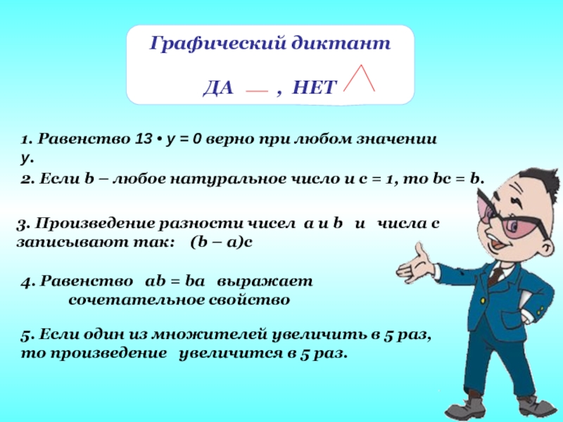 1. Равенство 13 • y = 0 верно при любом значении y.