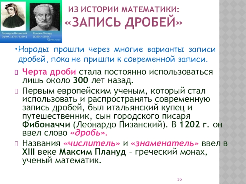 Народы прошли через многие варианты записи дробей, пока не пришли к современной записи.