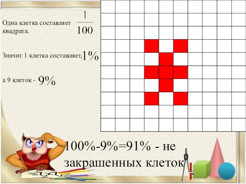 100%-9%=91% - не закрашенных клеток