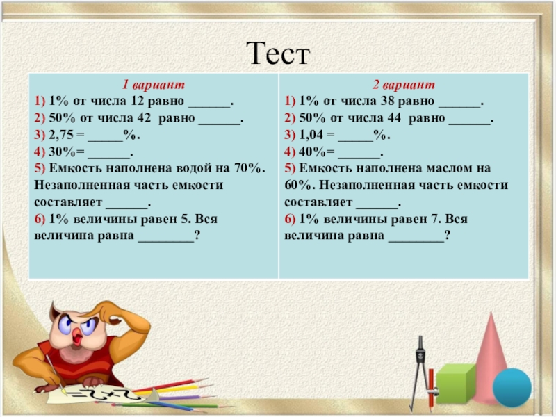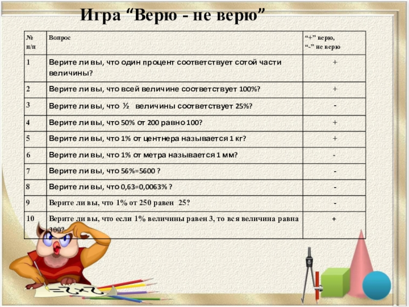 Тема урока:«Проценты»