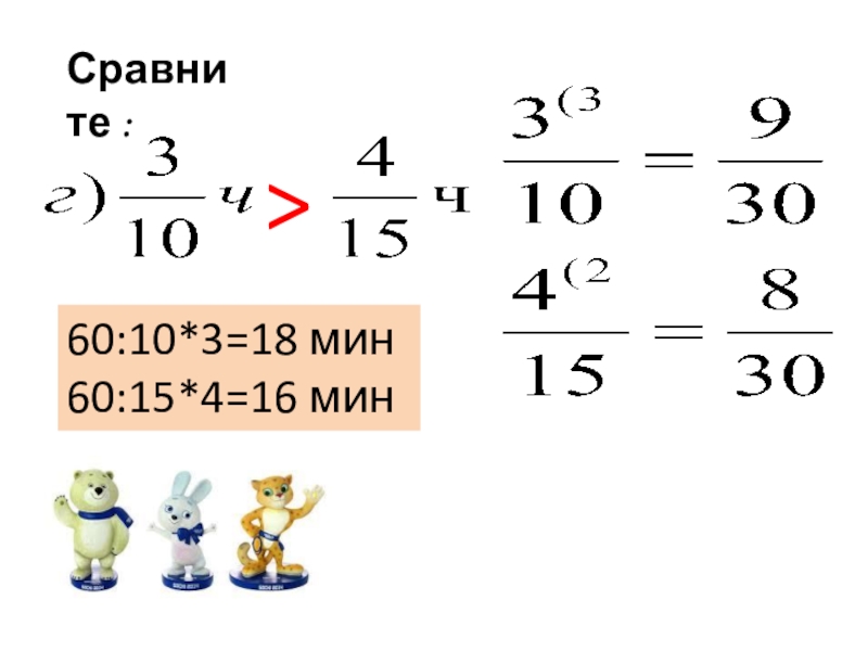 Сравните :60:10*3=18 мин60:15*4=16 мин>