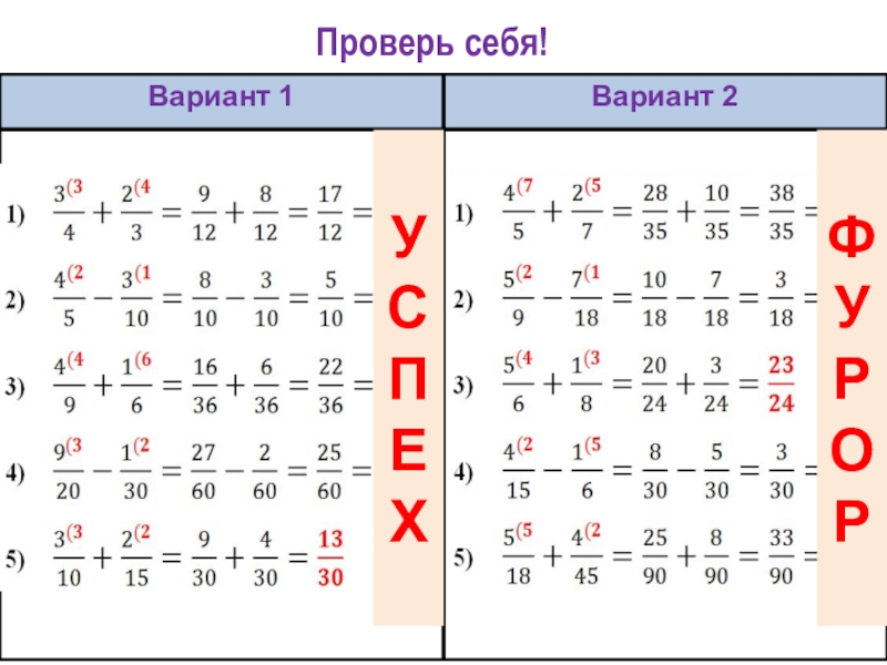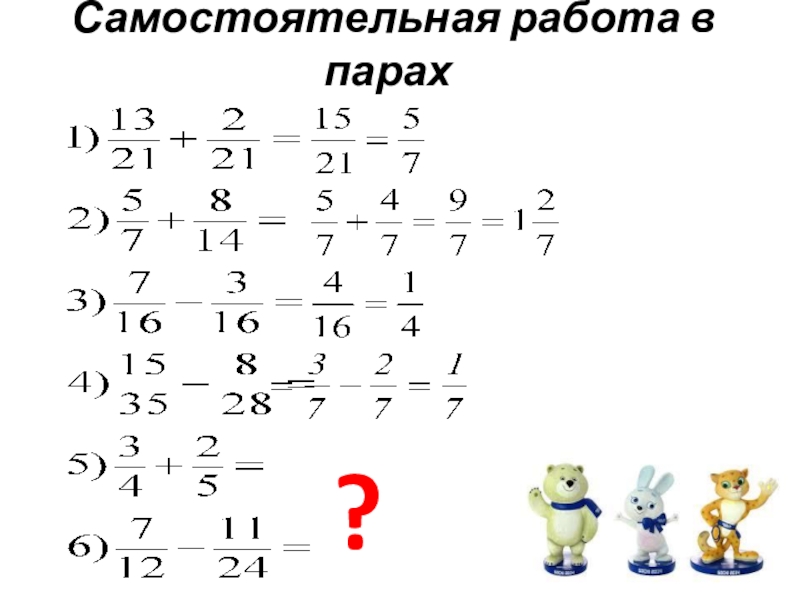 Слайд 12Сложение и вычитание дробей с разными знаменателями