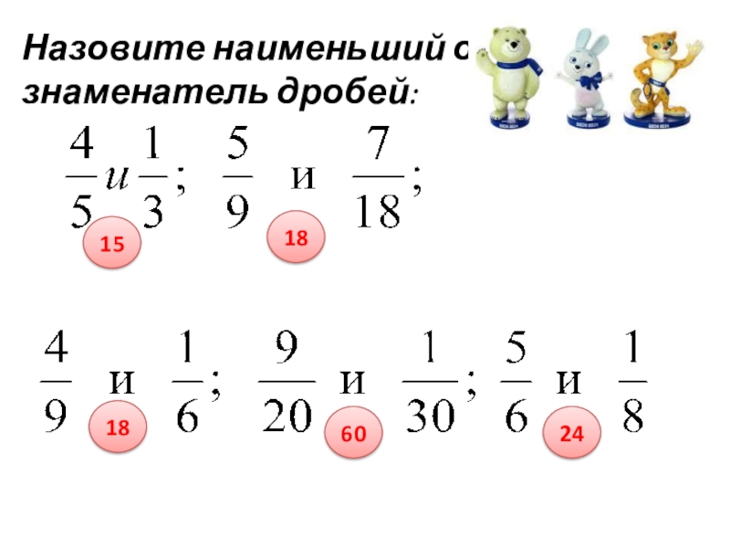 Слайд 9Назовите наименьший общий знаменатель дробей: