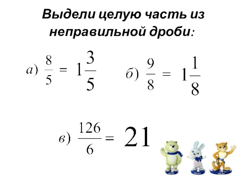 Слайд 10 Выдели целую часть из неправильной дроби: