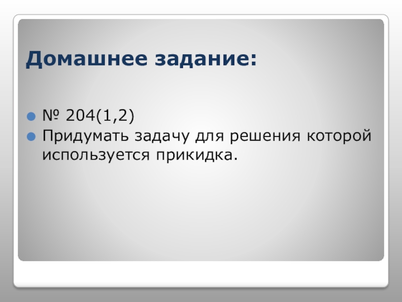 Домашнее задание:№ 204(1,2)Придумать задачу для решения которой используется прикидка.