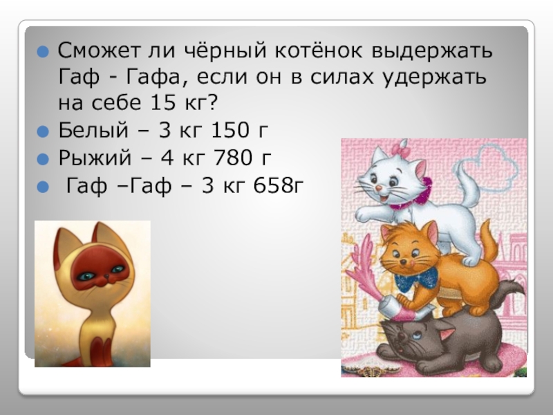Сможет ли чёрный котёнок выдержать Гаф - Гафа, если он в силах удержать на себе 15 кг?