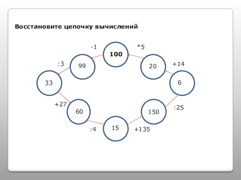 Слайд 2Восстановите цепочку вычислений